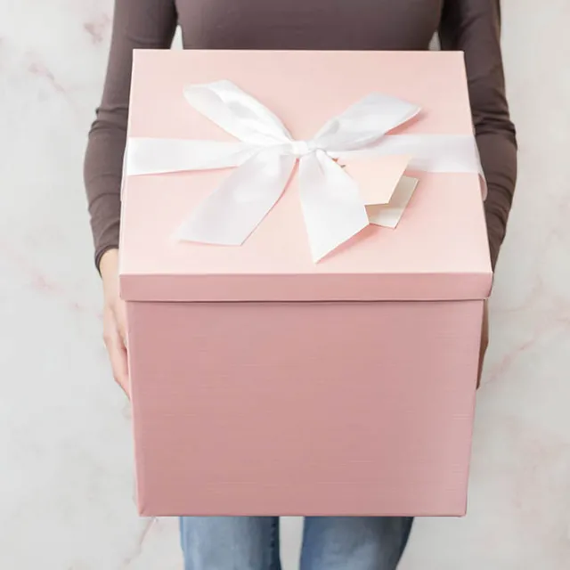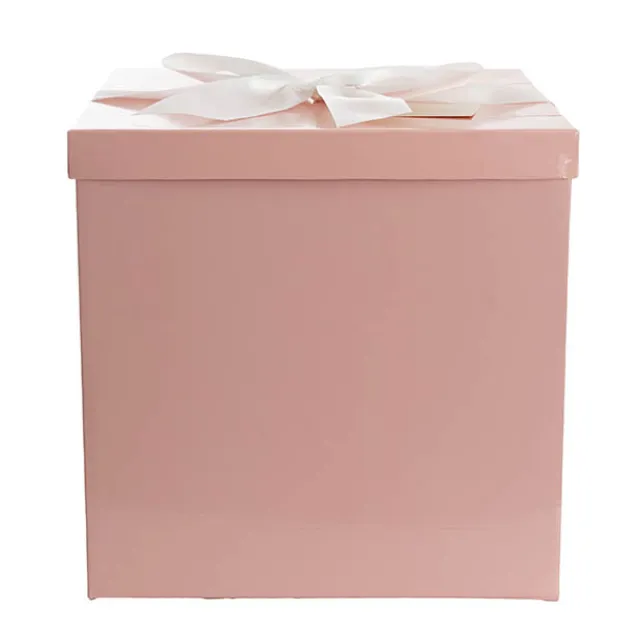 This box is flat packed for convenience and easy to assemble. Made of 300gsm E-flute corrugated materials, this box comes with a pre-attached white ribbon bow and small gift card.