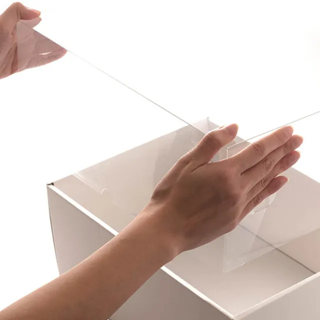 This item is flat packed and easily assembled. The transparent PVC lid showcases the contents of the box, ideal for displaying gifts or hampers that are visually striking or marketing-related.