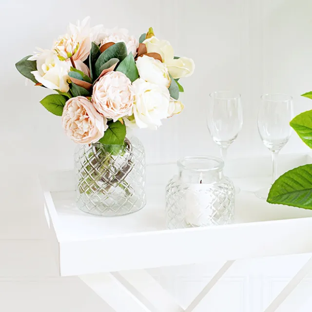 The top of the vase has a 6.5cm opening, 12.3cm diameter and stands 12cm tall.