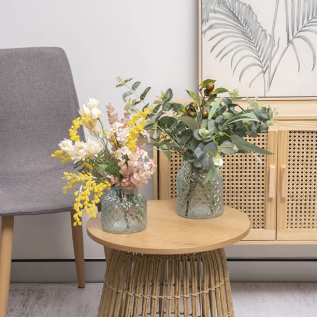 The top of the vase has a 6.5cm opening, 12.3cm diameter and stands 12cm tall.