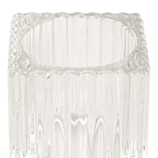 Cluster with our range of clear glass candle holders for an eclectic impact. Group with (SKU: 5101091 and 5101089) for staggered heights of the same style of candle holder.