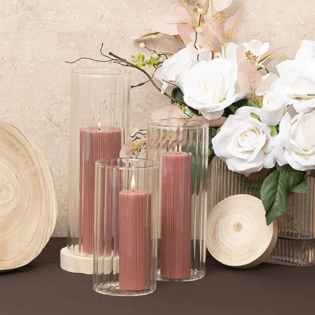 Designed to contain any drips and create a venue-safe candlelit experience, these glass lightweight and robust vessels can safely contain pillar candles, dinner taper candles, and Candle Sand Wax without fear of damage to the candle holder or your table surface.