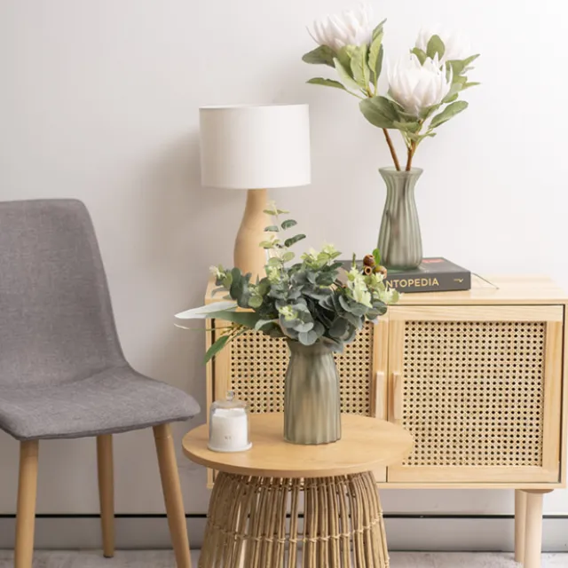The top of the vase has a 11cm opening, 11.5cm diameter and stands 20cm tall. The narrow neck measures at 6.5cm in diameter.