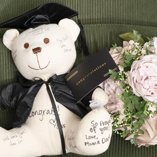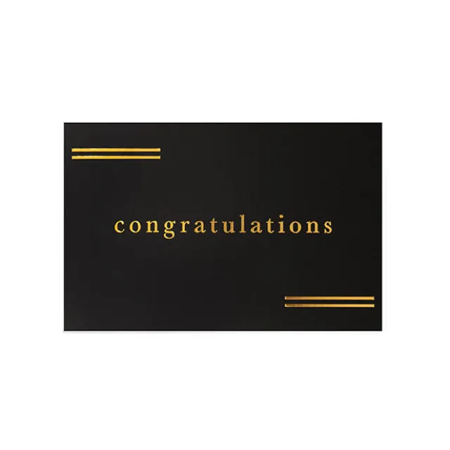 A single-sided non foldable card that is black on the front and white on the back so you can easily write your message. It features a Congratulations message in luxe gold foil.