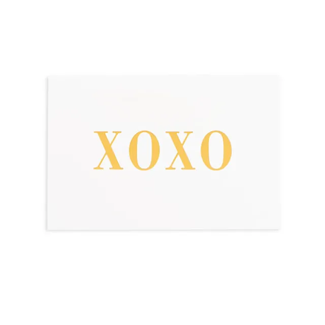A single-sided non foldable card in white that features a XOXO (Kiss Hug) message in luxe gold foil.