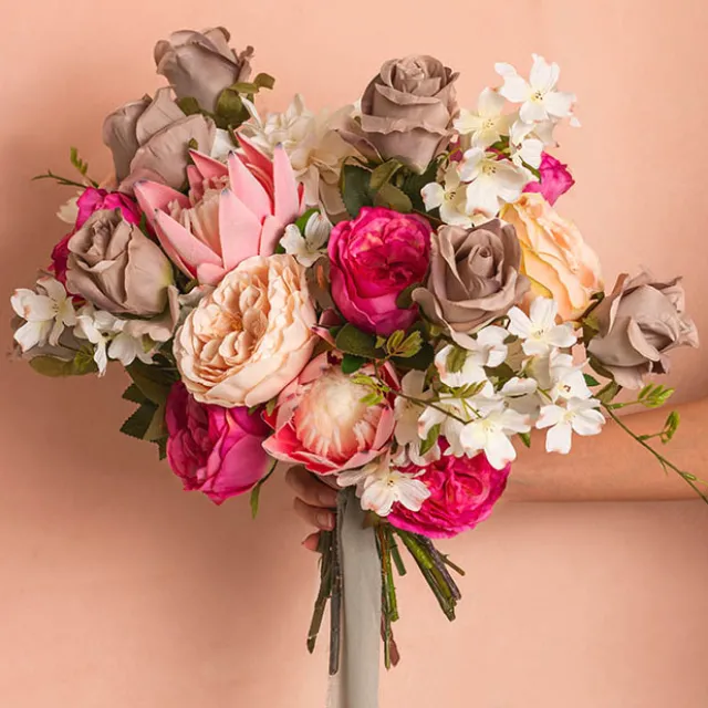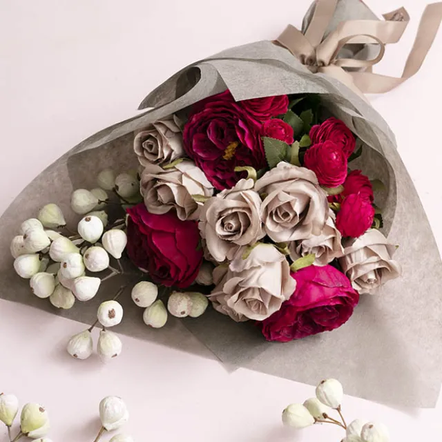 This bouquet features nine stunning flower heads, each measuring 7cm in diameter. Standing at a total height of 46cm, this product is sold individually.