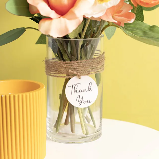 Each tag measures 5cm in diameter, with a hole at the left end for you to thread your own choice of ribbon or string. Please note, ribbon/string is not included. This product is available as a pack of 20.
