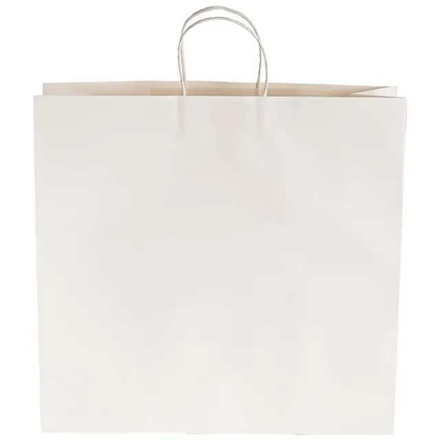 Available in a pack of 10, each bag measures 200gsm thick, can bear up to 14kg, features twist handles, and a flat base for easy packing. Available in brown and a range of sizes, this bag measures 430mm tall, 450mm wide, and 150mm deep in the gusset