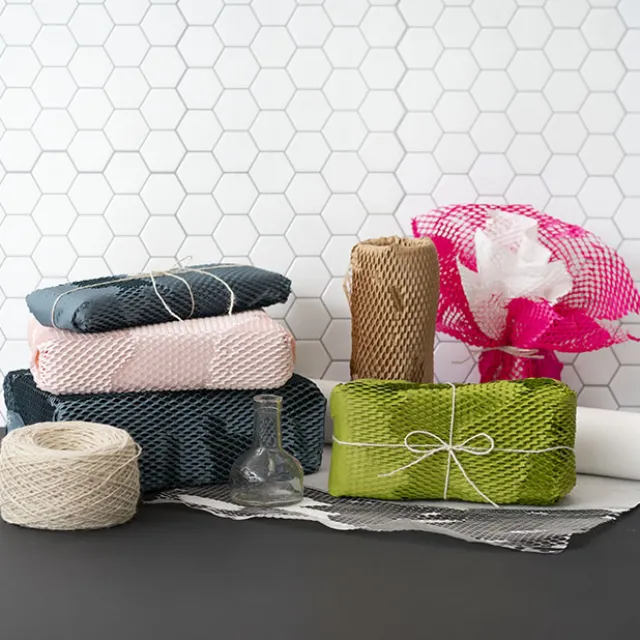 Emulating the intricate structure of honeycomb found in nature, our Honeycomb Wrap brings textural elegance to wrapped floral creations. The unique hexagonal cells add design flair while simultaneously gently cradling your arrangement.