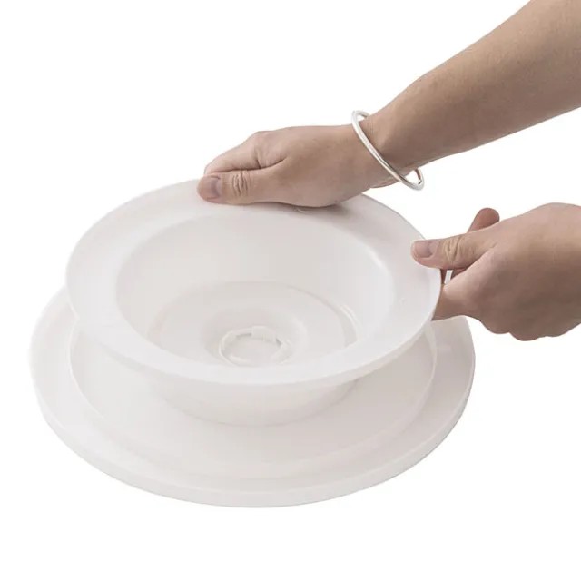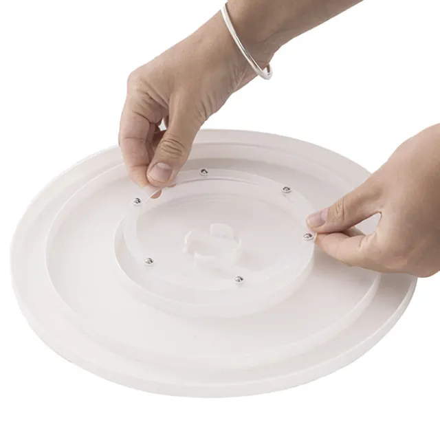 Turntable measures 28cm in diameter and 7cm in height. It holds up to 5kg.
