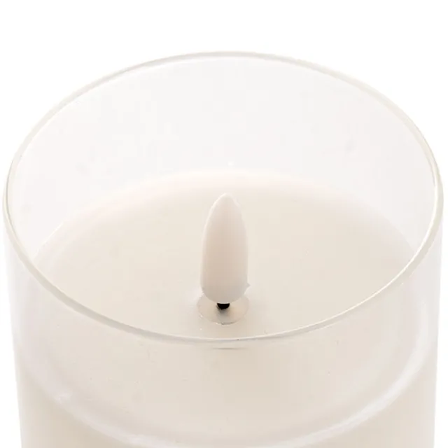 Be mesmerised by the magic of LED event candles. This Glass Trueflame™ Flickering LED White pillar candle gives a cosy ambiance like a real candle. It is a safe alternative to decorate your home, weddings and any special events. Featuring a glass holder filled with real wax, long battery lighting life and a realistic flameless glow.