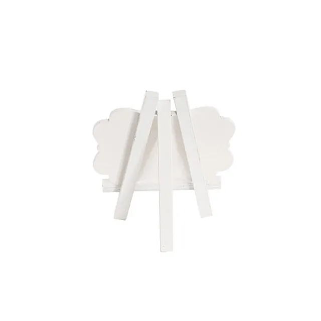 Each white wooden easel features a gold coloured scroll borderand three legs with a hinged top.