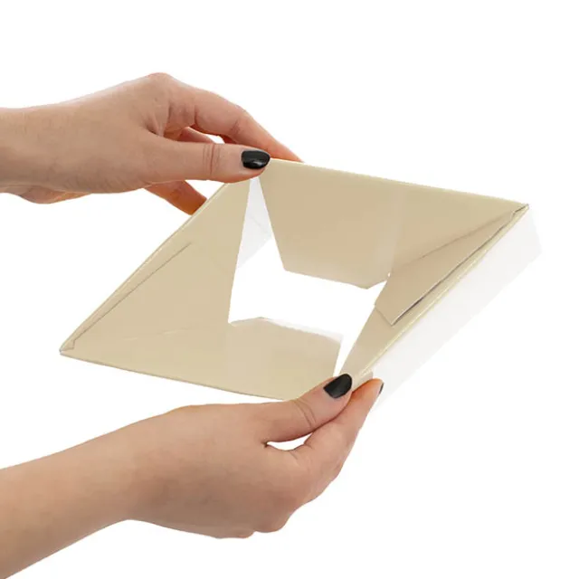 This posy box has our autolock feature, which allows for ‘one-step’ assembly. To assemble, simply take your flat-packed posy box, and open. The base will lock into position with a light pull or (or push from the inside).