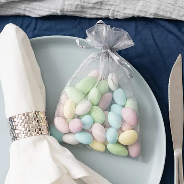 Available in packs of 10, these organza bags.measure 12.5x17cmH, with a fill area of 12.5cmx13cm.