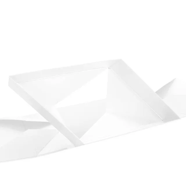 The origami style fold is super simple to assemble and the finished box in matte white will wow both the user and recipent.