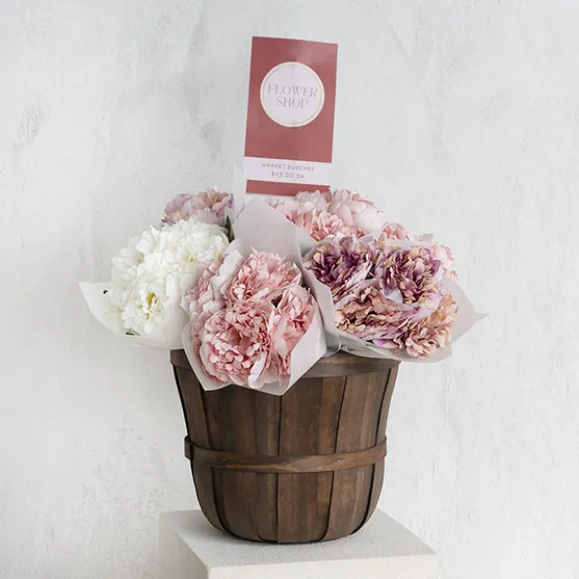 Each flower head measures 12cm in diameter and the total height of the bouquet is 32cm.