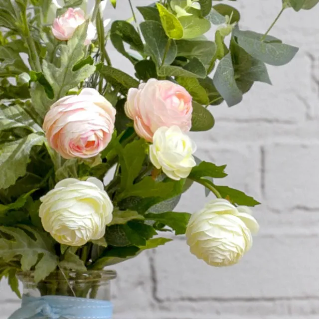 This spray measures 42cm tall. The open flower measures 4.5cm in diameter, and the buds measure 3.5cm in diameter.