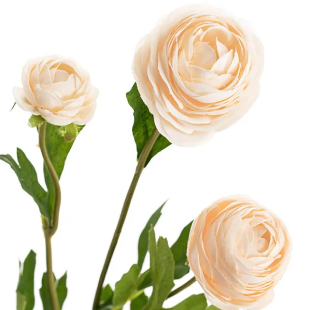 This spray measures 42cm tall. The open flower measures 4.5cm in diameter, and the buds measure 3.5cm in diameter.