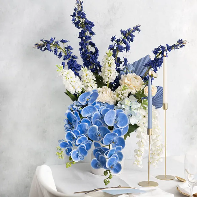 Each stem has nine flowers, three buds, and measures 100cm in overall height. Each flowering section of the stem measures 40cm long.
