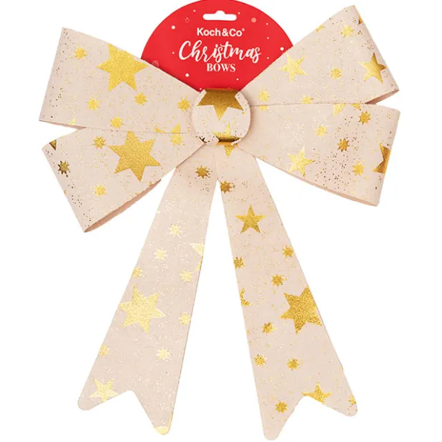 The front of the bow is a natural fabric and has a PVC backing, enabling it to always hold its shape. Featuring easy-to-use twist tie attachments, this bow is a surefire way to add a polished yet fun touch to your gifts and decor this holiday season.