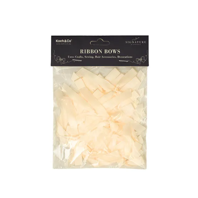 Sold as a pack of 24, this bow is made with 10mm double-face satin ribbon. The bow loops create a 6.5cm wide bow. The tails are approximately 5.5cm long and can be trimmed to suit your needs.