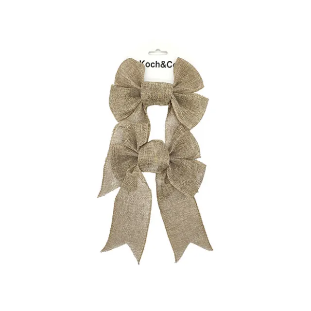 This rustic bow has a sewn-wired edge, which gives it a polished finish. Featuring easy-to-use tieattachments, this bow provides a simple way to add a homey festive touch to your gifts and decor this holiday season.