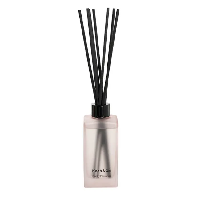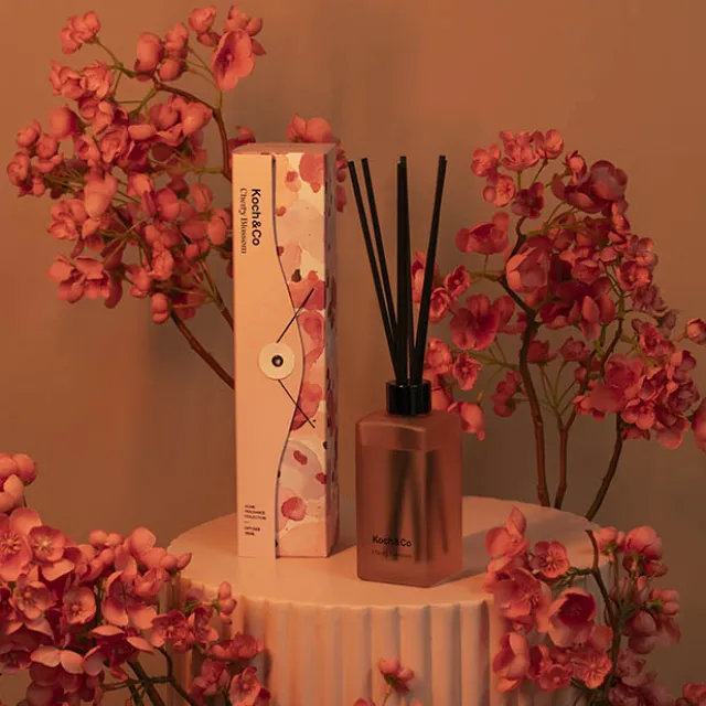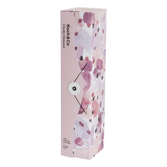 Beautifully packaged in an origami-style box that is completely recyclable and plastic-free, this diffuser comes in a frosted pink glass bottle with black accents.