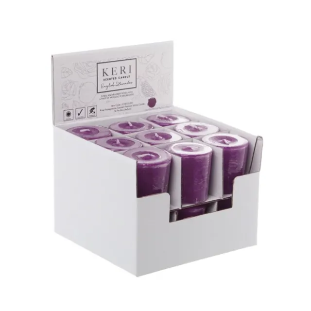 Features: Sold individually however if 18 of the same scent are purchased candles arrive in a display box to assist with reselling. Pair with votive candle holders to avoid drips and complete the look. Burn time of each votive candle is 12 hrs. Wick is made from cotton.