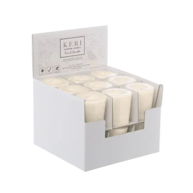 Features: Sold individually however if 18 of the same scent are purchased candles arrive in a display box to assist with reselling. Pair with votive candle holders to avoid drips and complete the look. Burn time of each votive candle is 12 hrs. Wick is made from cotton.