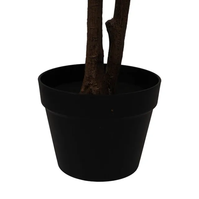 This tree has an overall height of 160cm. The pot measures 14cm tall, with a top diameter of 18cm, while the bottom measures12cm in diameter.