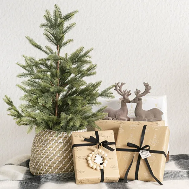 Finished with a rustic hessian pot cover, this tree measures 90cm tall and is sold individually.