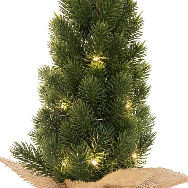 This tree is finished with a rustic hessian pot cover. It requires 2 x AA batteries, which are not included. This tree measures 46cm tall and is sold individually.