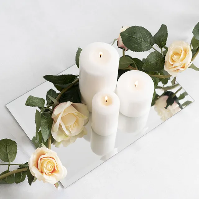 Each mirror measures 30.5cm x 20.5cm and is available in a pack of two. This product measures 3mm thick. Each mirror plate features small, raised grips on the base.