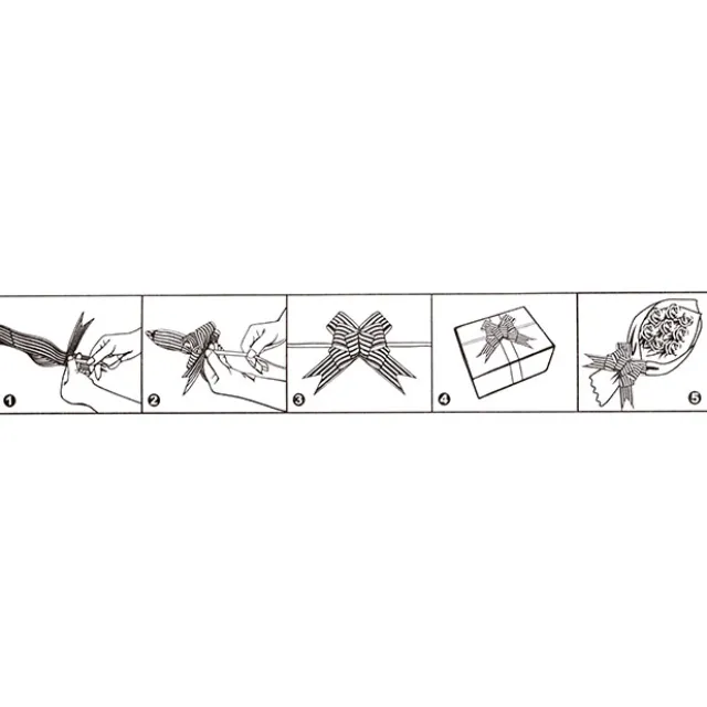 To assemble, this bow employs a simple and unique pull mechanism. Simply remove from the packaging, locate and pull the two inner narrow lengths while holding the thicker tails apart, and viola! You have a beautiful bow. The two thin tails can be used to tie to your bouquet, hamper or gift and each measure 45cm in length.