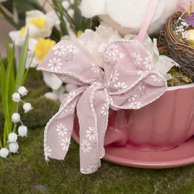 Thanks to the sheer nature of this fabric, this ribbon is well-suited to layering on top of solid ribbons for added dimension and increased colour contrast.