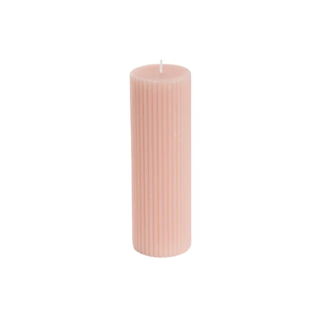 Our Roman Fluted Pillar Candle in Pale Pink is a plain-coloured ribbed candle that will bring textural interest to your event and home decor. Pair with other products from our Roman Fluted candle range for a complementary cluster. This candle is dripless.