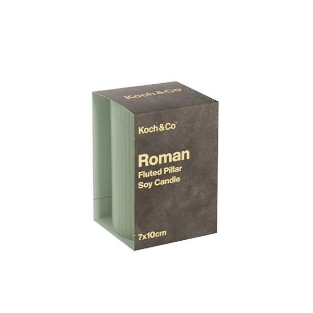 Our Roman Fluted Pillar Candle in Pale Sage is a plain-coloured ribbed candle that will bring textural interest to your event and home decor. Pair with other products from our Roman Fluted candle range for a complementary cluster. This candle is dripless.