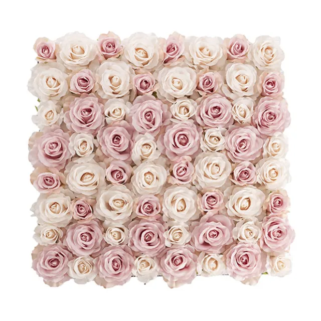 Each individual flower head is 8cm in size. Suitable to display with 3M tape. Weighs 1kg, 81 Rose heads in each wall. Measures 50cm x 50cm.