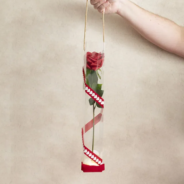 This is a classical all year round cylinder for flowers, confectionary and general packaging ideas. You can use with clear cellophane shred, coloured flower wrap, crystal rocks or other decorative pebbles in the base. Beautifully displays a single rose or flower of your choice. Add a gift tag and bow and you have a perfect gift.