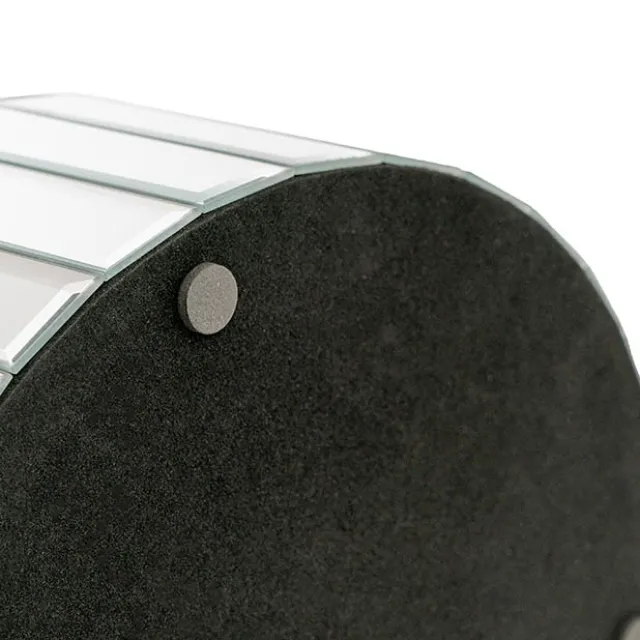 This platform riser is elegantly finished with a bevelled edge and flocked black base with rubber pads.