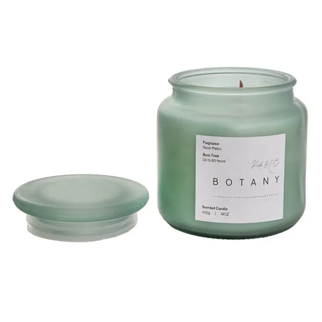 Our larger Neon Melon Botany Jar Candle has been enhanced with a wooden wick that crackles as it burns, adding a sensory dimension to its vibrant and refreshing melon scent. This candle is perfect for enlivening any room and serves as a colorful choice for an energetic addition to gift hampers.