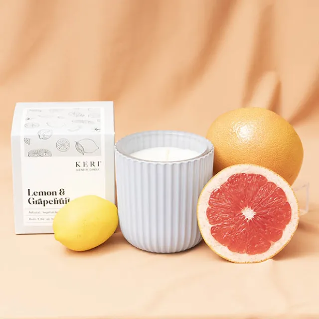 Refresh and invigorate your surroundings with the zesty aromas of lemon and grapefruit in our Evelyn III Lemon & Grapefruit scented candle. The sharp, citrus notes are balanced with a slight sweetness, making this candle a perfect choice for energizing any space. Handmade with natural soy blend wax and premium fragrances for a clean, effective burn.