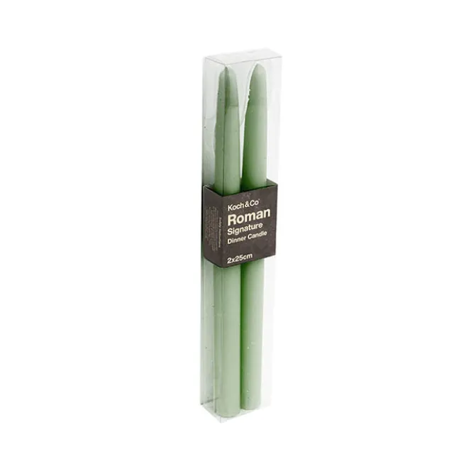 Our Signature Taper Dinner Candle in Pale Sage is a plain-coloured dinner candle that will bring interest to your event and home decor. Pair with other products from our coloured candles range for a complementary cluster. This candle is not dripless and is available in packs of 2.