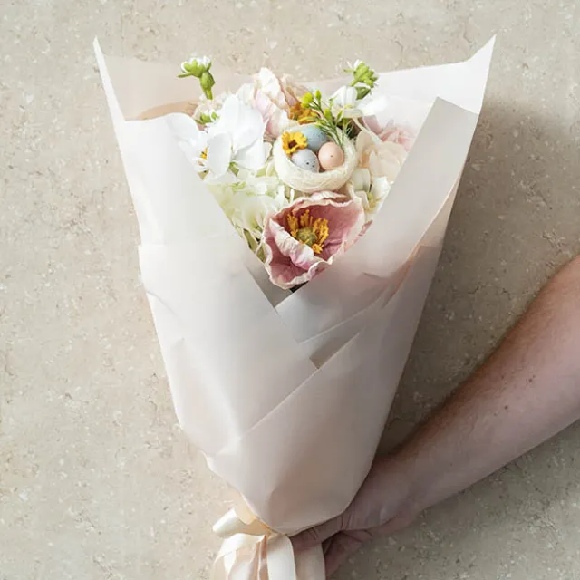 A sturdy and solid wrap, this Ribbed Tallow Paper is perfect to use for fresh floral arrangements and gift wrapping. It has a fine ribbed textured finish, adding a lovely design element to your wrapped bouquet.