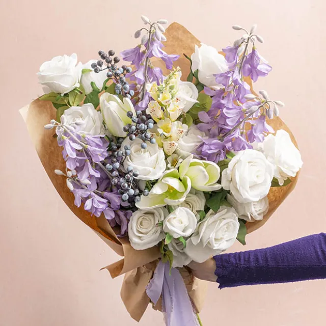 Perfect for creating full, dramatic floral arrangements or adding a touch of sophistication to any décor, this rose spray exudes timeless beauty and elegance.