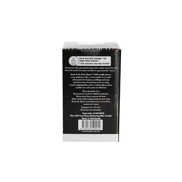 This Trueflame™ Flickering LED Black Pillar Candle gives a cosy ambiance with none of the messy wax drips, nor the fire hazard. Use this candle for a home and venue-safe alternative to traditional wax candles. This LED candle features a real wax finish, long battery life, and the realistic flameless glow that make the Trueflame™ range so popular.