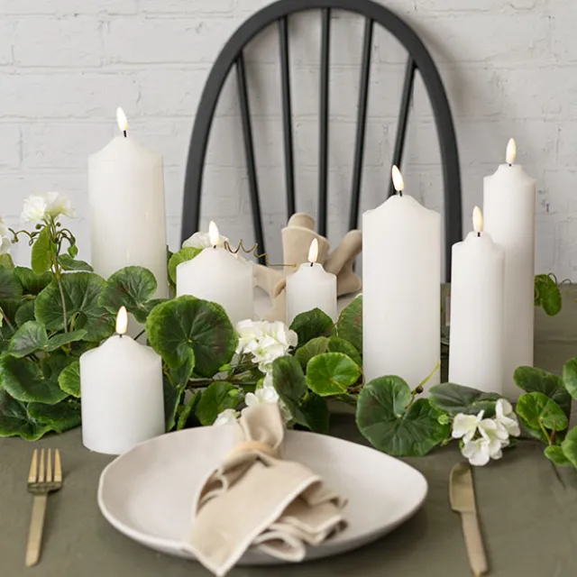 Be mesmerised by the magic of LED candles. This Trueflame™” Flickering LED White pillar candle gives a cosy ambiance like a real candle. It is a safe alternative to decorate your home, weddings and any special events. Featuring real wax, long battery lighting life and a realistic flameless glow.