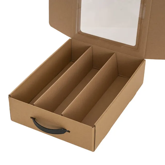 The internal divider makes it easy and safe to display 3 standard-sized bottles of wine, and the secure plastic handle makes the wine easy to carry. Alternatively, remove the insert to use the box to display other gift items.