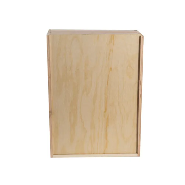 This box from 8mm thick wood with a natural finish. The sliding lid measures approx. 3mm thick.