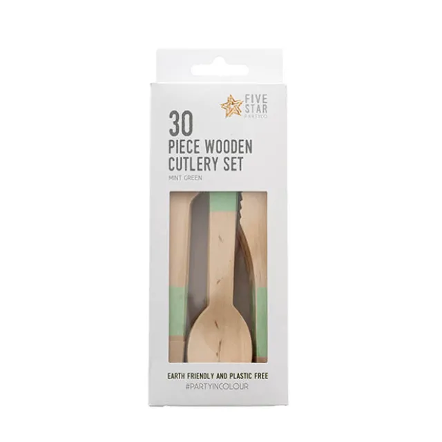 This product is available in a set of 30 pieces, including 10 knives, 10 spoons, and 10 forks.